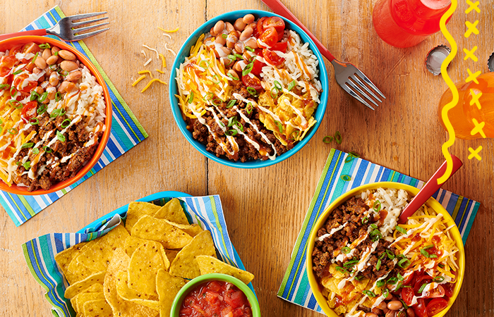 Serve up our recipe for Easy Beef Burrito Bowls. It's uses an Old El Paso™ Seasoned Beef Burrito Bowl Kit and has cilantro lime white rice, mild Mexican seasoning mix and mild queso blanco sauce all included. Just add your family's favorite fresh toppings and let everyone build their bowl just the way they like it.