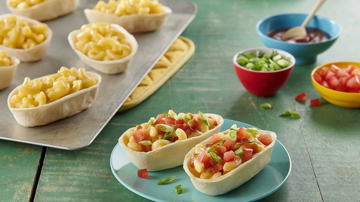 Just when you thought everyone's favorite mac and cheese meal couldn't get any better—it does—by making mac and cheese bowls! Mac and cheese taco bowls turn this classic favorite into a fun bite-size appetizer or light meal with an easy, made-from-scratch creamy cheese sauce. Old El Paso™ Mini Soft Tortilla Bowls create a new way to enjoy the go-to family meal that's calling for the addition of tasty toppings for a taco twist.