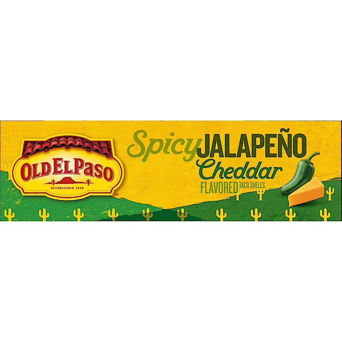 Turn up the heat on taco night with Old El Paso Spicy Jalapeno Cheddar Flavored Stand 'N Stuff Crunchy Taco Shells. Each bite is blasted with zesty jalapeno cheddar flavor for a fiery twist! These gluten free, hard taco shells have a flat bottom, so they stand up on their own. Fill each one up with your favorite meats, cheeses, beans, and fresh toppings. For more than 80 years, Old El Paso has been bringing families and communities together to celebrate old and new traditions around delicious, Mexican inspired flavors. We believe that any night can be a taco night, and we're here to help make it a little easier and a lot more delicious. Our variety of crispy hard taco shells, tasty soft tortillas, flavorful seasonings, and much more help make taco night fun. Contains one cardboard box of 10 whole Old El Paso Spicy Jalapeno Cheddar Flavored Stand 'N Stuff Taco Shells, Gluten Free, 5.4 oz.