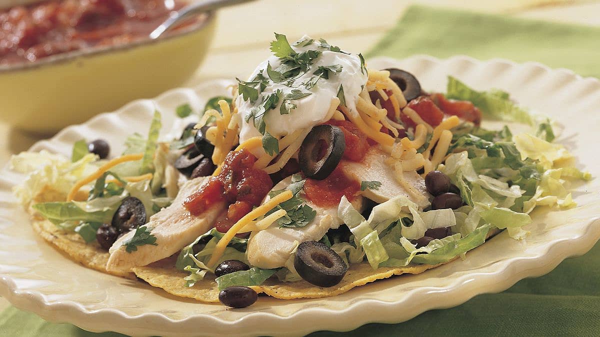 2. Unwrap taco shells. To heat in OVEN, place shells on cookie sheet and pull apart slightly. Bake at 325°F for 6 to 7 minutes until crisp. (To heat in MICROWAVE, place shells on microwavable plate. Fan out, overlapping slightly. Microwave on High 45 seconds until warm.)